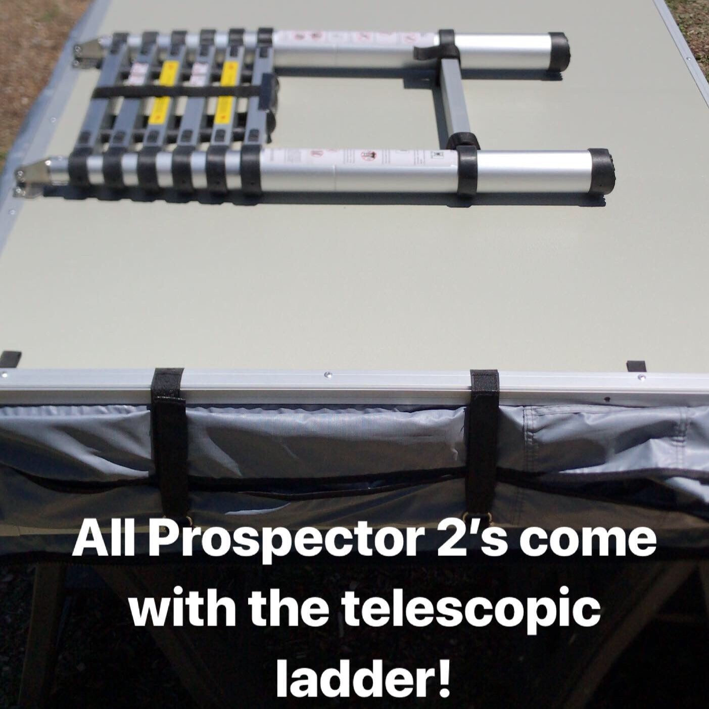 - Telescopic aluminum ladder included