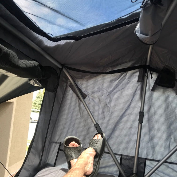 This tent can easily be paid with your current luggage rack, bike, or skybox. It is a highly convenient product, which is only 24 inches in width when folded up. This means that your roof can be kept free for other things!