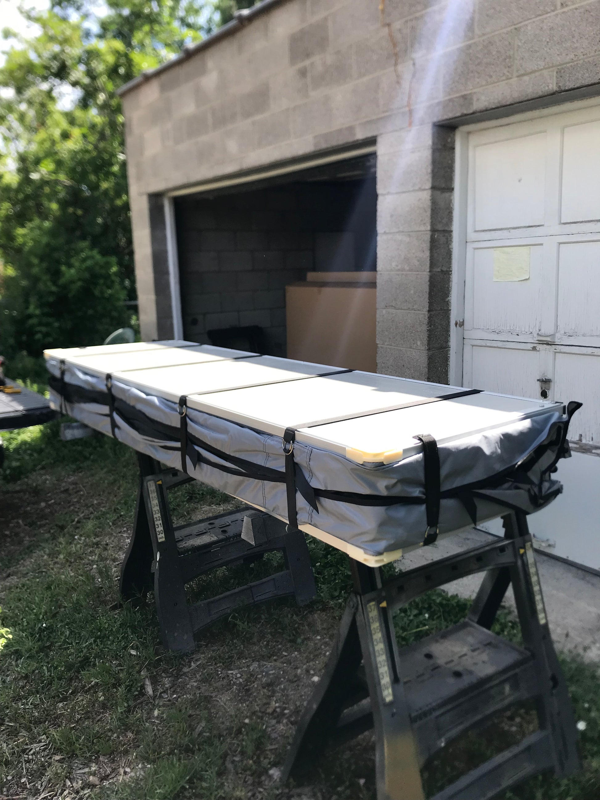 Aluminum frame, aluminum poles, and sheets with insulated foam |
