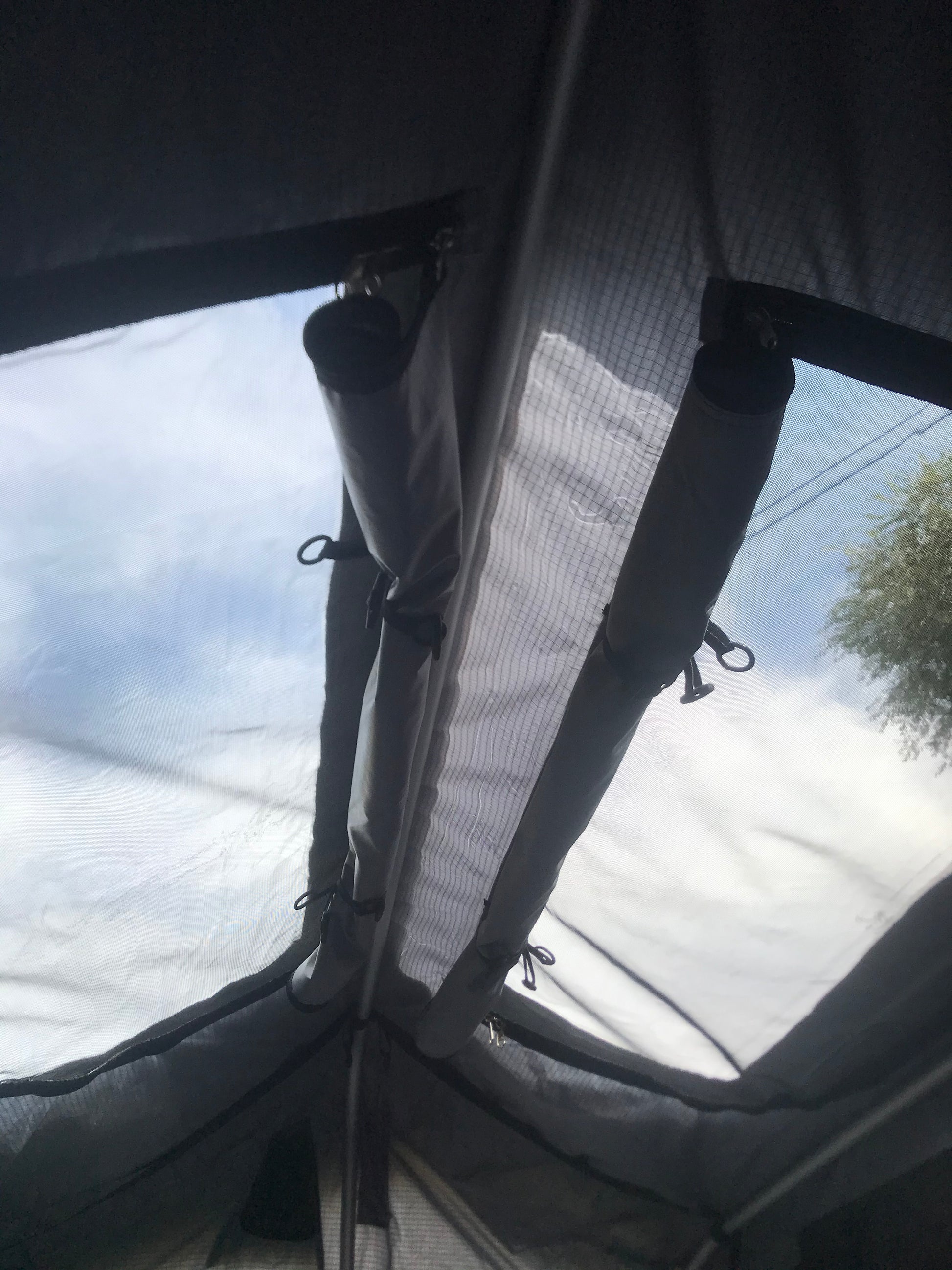 | Ladder | Telescopic extends up to 7'6" (does not stay on the tent when folding it up) |