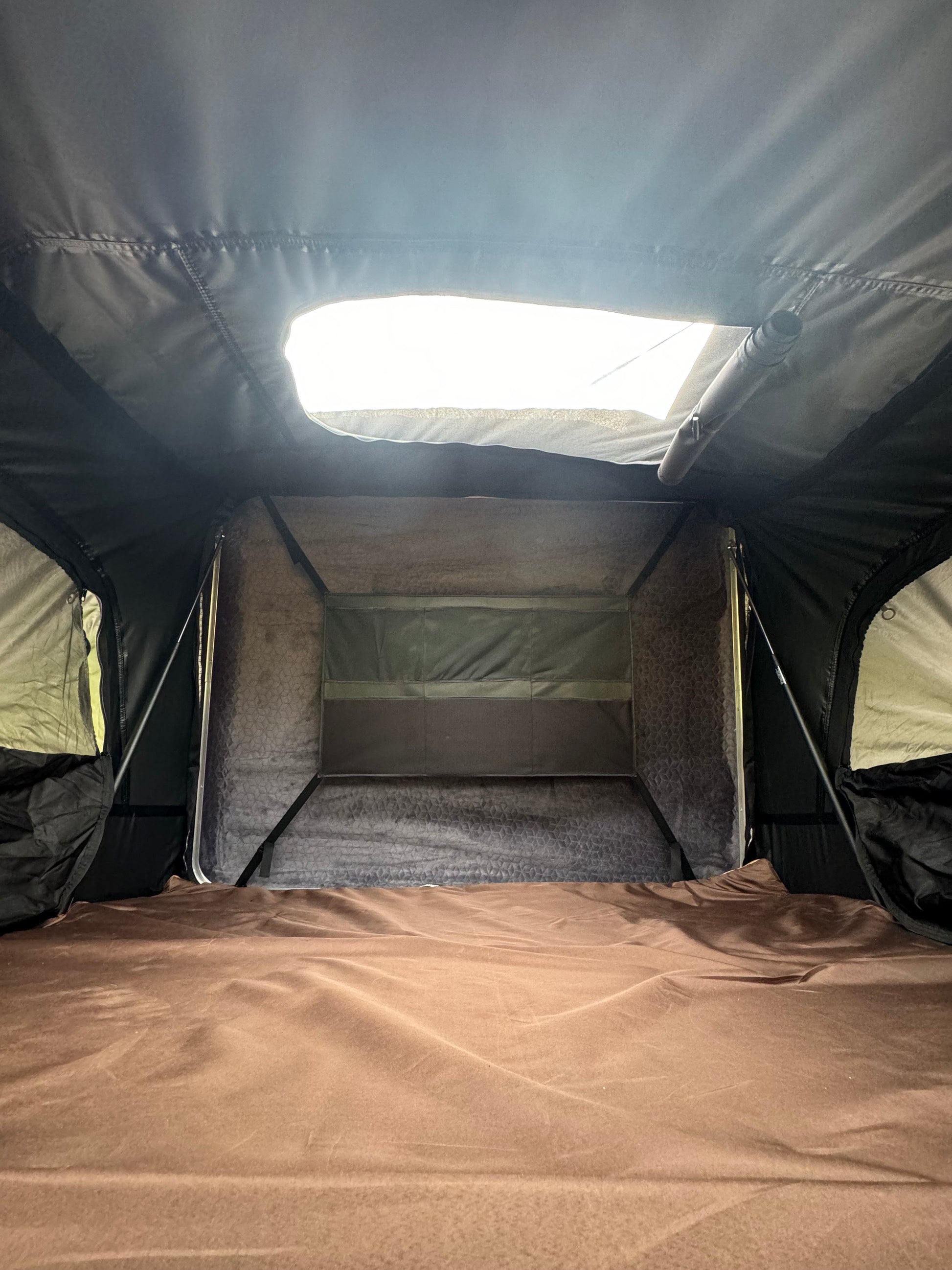 This is a hard shell model that is roughly 3 to 4 persons depending on the size of persons. It folds out to the side and also has an annex room available to add on.